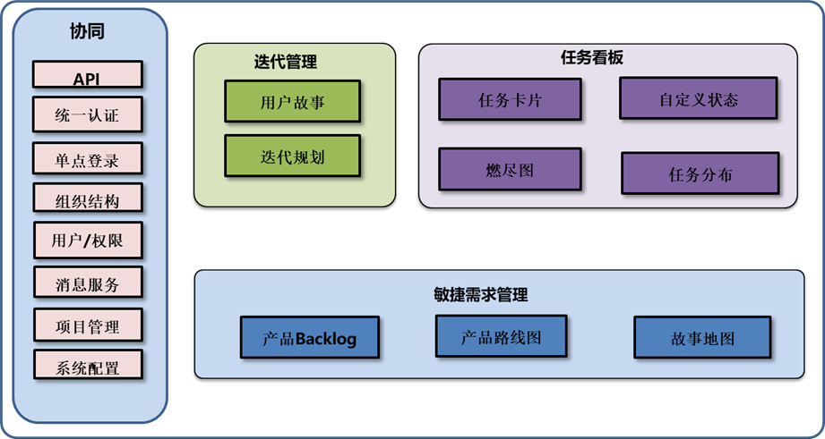 • 协同管理部分(包括平台的API,,,认证管理,,组织结构,,,,权限管理以及系统的配置);